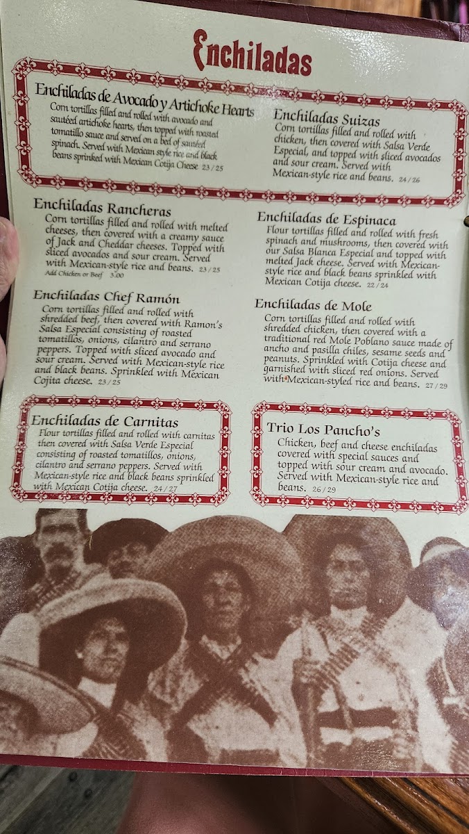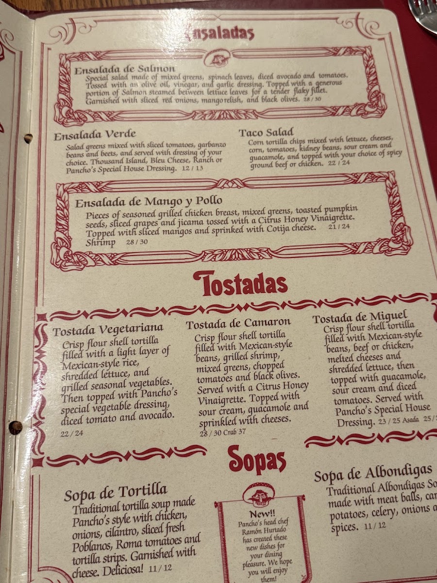 Pancho's is a favorite spot for really good Mexican dishes. The Margaritas sadly are hit or miss. Today they were a miss (and at $16.95 a glass, they should always be excellent) but the food was delicious.